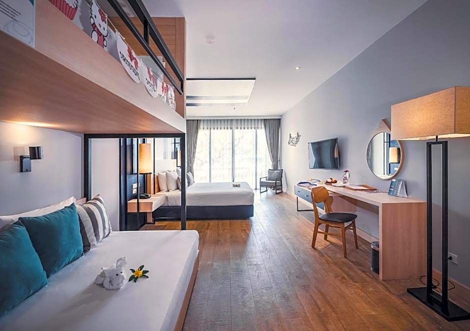 Strandglück trifft entspannten Familienspaß in diesem Rückzugsort in Cha-am. Ein privater Strandbereich liegt direkt am Rand des Grundstücks und wird durch zwei Außenpools und eine Wasserrutsche ergänzt – ein separater Kinderpool sorgt für zusätzliche planschfreundliche Möglichkeiten. Kostenlose Parkplätze vor Ort und kostenloses WLAN machen den Aufenthalt unkompliziert, während eine Terrasse einen entspannten Platz bietet, um die Meeresbrise zu genießen. Die Tage vergehen mit Sonne, Sand und dem freundlichen Rhythmus eines Küstenurlaubs.